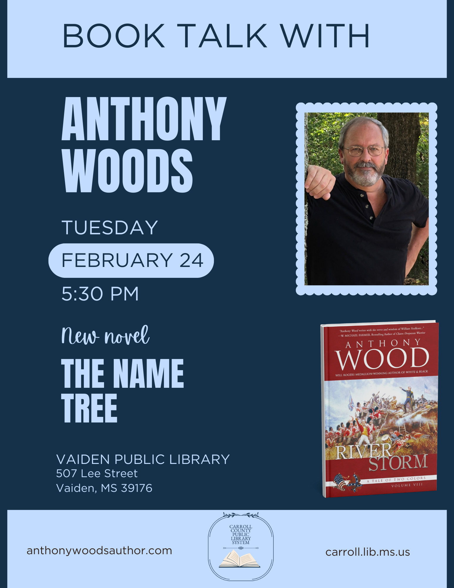 Events at the Carrollton-North Carrollton Public Library Holidays and Announcements Events at the Vaiden Public Library Bingo! Bingo! Author Talk Game Day! Card Game Night Game Day Author Talk